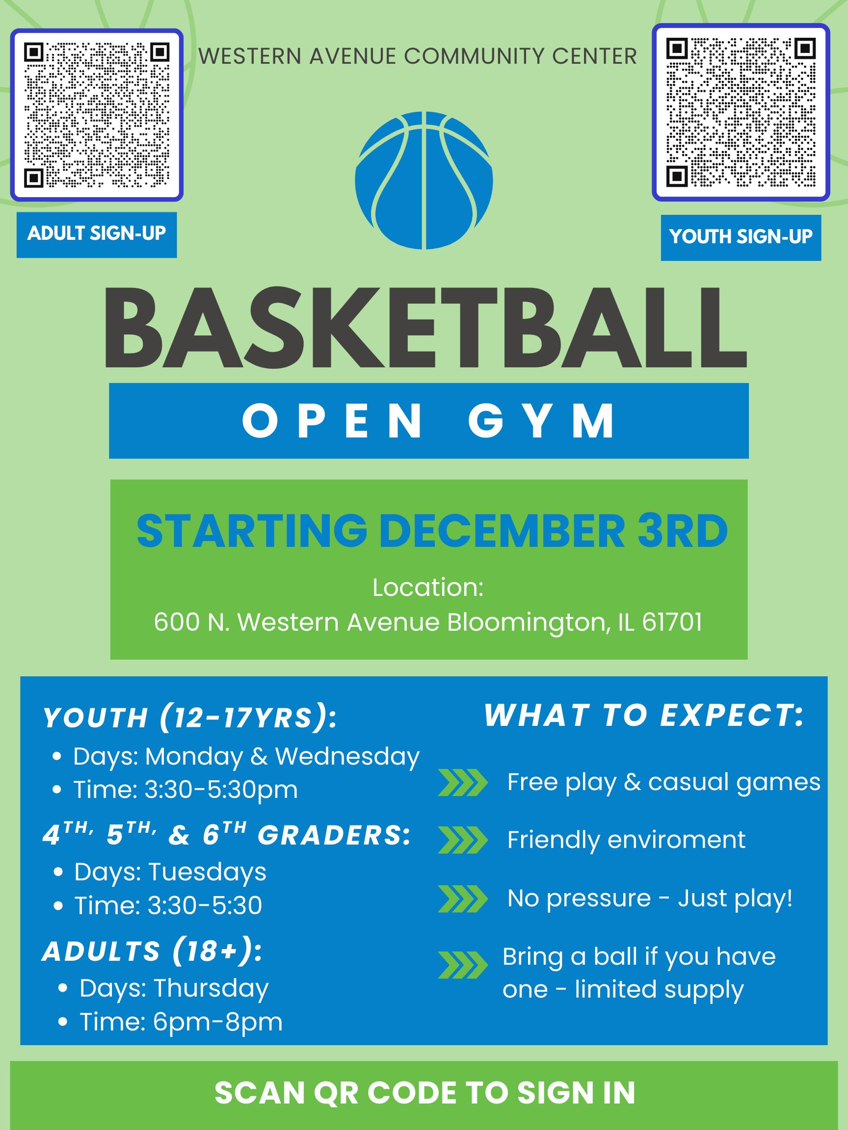 Western Avenue Community Center offers Open Gym for youth to come hang out, stay active, and have fun in a safe and welcoming space! Youth ages 12–17 can join us on Mondays and Wednesdays from 3:30–5:30pm for games, basketball, and time with friends. We also have Open Gym just for 4th, 5th, and 6th graders on Tuesdays from 3:30–5:30pm. It’s a great way for kids to burn off energy, build friendships, and be part of a positive community after school!